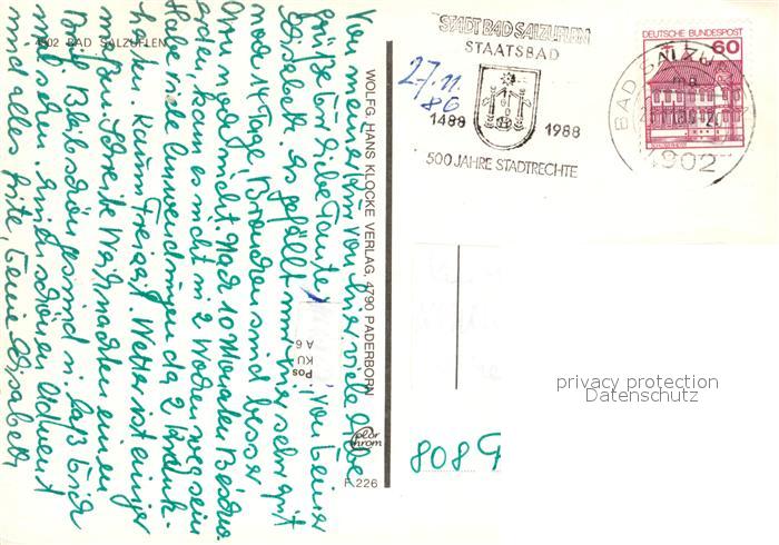 73062224 alte Postkarte Bad Salzuflen Buergerhaeuser Langestr Haeuser am Markt Rathaus Hinter der Wieke Haus Bocks postalisch gelaufen Erhaltung siehe scans [WerneD78] KatCode: 11110005766008