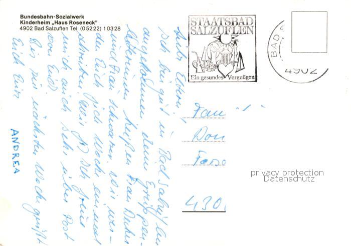 73017802 alte Postkarte Bad Salzuflen Bundesbahn Sozialwerk Kinderheim Haus Roseneck postalisch gelaufen Erhaltung siehe scans [WerneD78] KatCode: 11110005766008