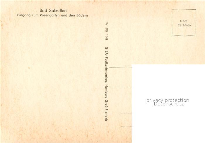 73242832 Bad Salzuflen Eingagn zum Rosengarten und den Baedern postalisch nicht gelaufen Erhaltung siehe scans [LiesaD40] KatCode: 11110005766008