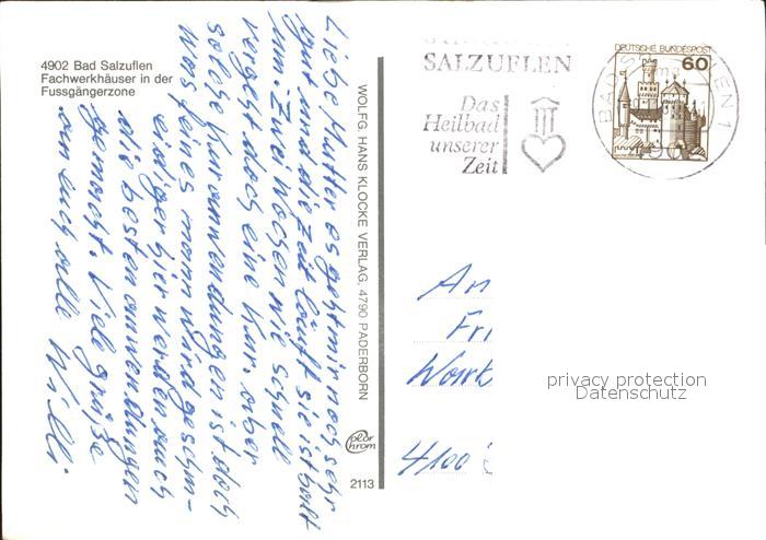 72312364 alte Postkarte Bad Salzuflen Fachwerkhaeuser in der Fussgaengerzone postalisch gelaufen Erhaltung siehe scans KatCode: 11110005766008