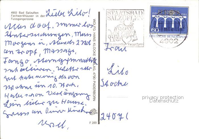 72479410 alte Postkarte Bad Salzuflen Fachwerkhaus in Fussgaengerzone postalisch gelaufen Erhaltung siehe scans KatCode: 11110005766008