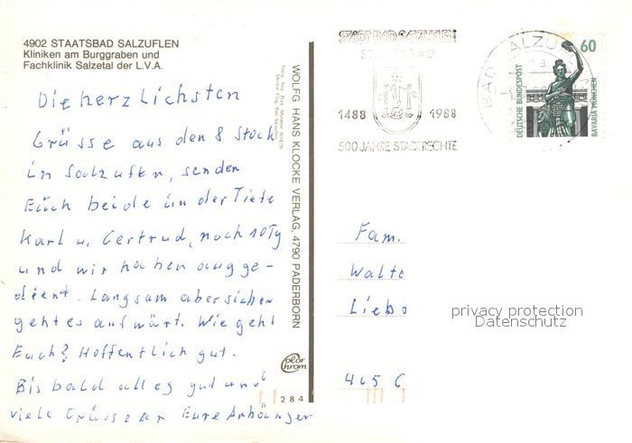 72967789 alte Postkarte Bad Salzuflen Fliegeraufnahme Kliniken am Burggraben und Fachklinik Salzetal postalisch gelaufen Erhaltung siehe scans [LiesaD40] KatCode: 11110005766008