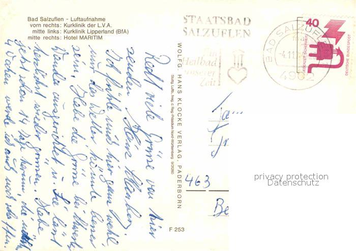 72842825 alte Postkarte Bad Salzuflen Fliegeraufnahme Kurkiniken Hotel Maritim postalisch gelaufen Erhaltung siehe scans [AndreD76] KatCode: 11110005766008