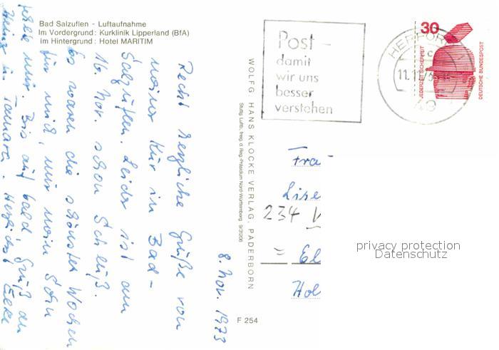 72665956 alte Postkarte Bad Salzuflen Fliegeraufnahme Kurklinik Lipperland Hotel Maritim postalisch gelaufen Erhaltung siehe scans [WerneD78] KatCode: 11110005766008