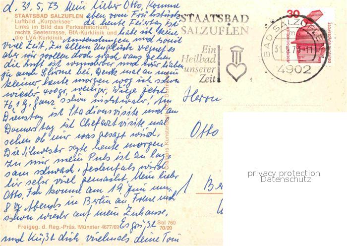 72726668 alte Postkarte Bad Salzuflen Fliegeraufnahme Kurparksee BfA und LVA Kliniken postalisch gelaufen Erhaltung siehe scans [WerneD78] KatCode: 11110005766008