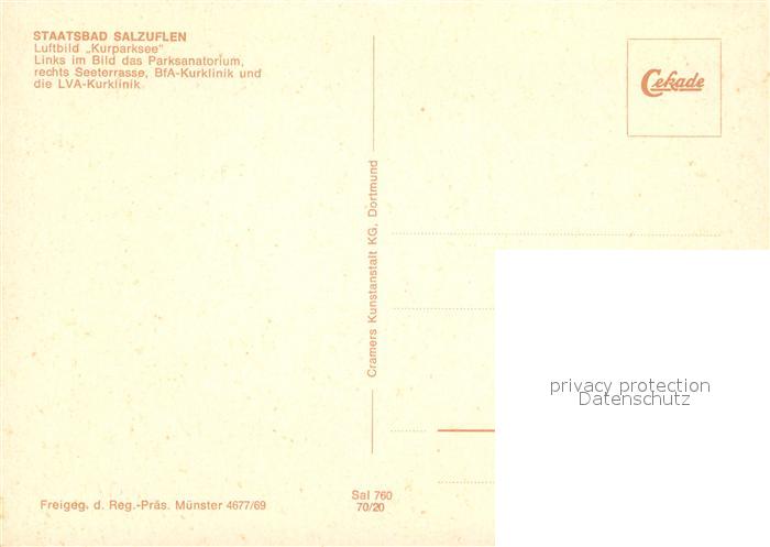 73017795 Bad Salzuflen Fliegeraufnahme Kurparksee Parksanatorium Seeterrasse BfA Kurklinik LVA Kurklinik postalisch nicht gelaufen Erhaltung siehe scans [WerneD78] KatCode: 11110005766008