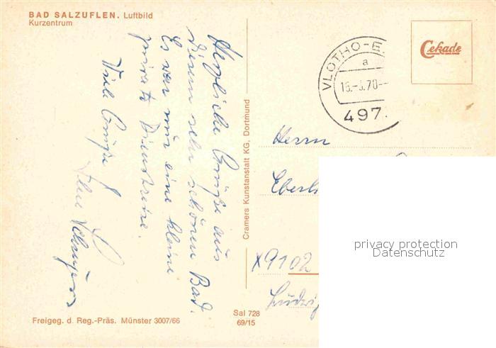 72850939 alte Postkarte Bad Salzuflen Fliegeraufnahme Kurzentrum postalisch gelaufen Erhaltung siehe scans [NatalD47] KatCode: 11110005766008