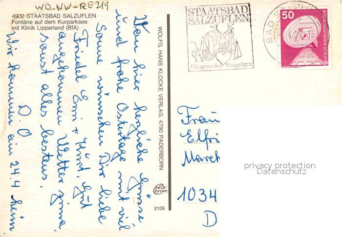 72889937 alte Postkarte Bad Salzuflen Fontaene Kurparksee Klinik Lipperland postalisch gelaufen Erhaltung siehe scans [FriedD77] KatCode: 11110005766008