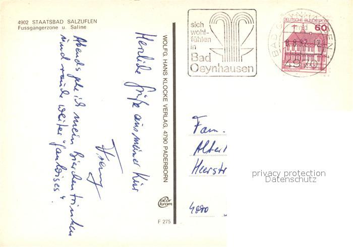 73311985 alte Postkarte Bad Salzuflen Fussaengerzone Saline postalisch gelaufen Erhaltung siehe scans [NatalD47] KatCode: 11110005766008