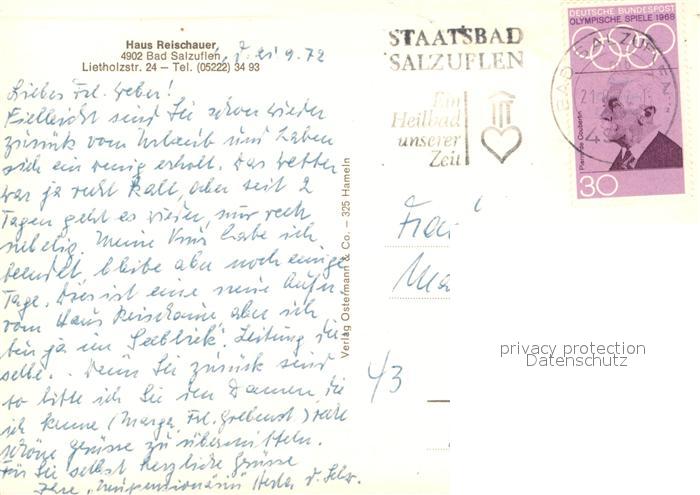 73324220 alte Postkarte Bad Salzuflen Gaestehaus Pension Haus Reischauer postalisch gelaufen Erhaltung siehe scans [FriedD77] KatCode: 11110005766008