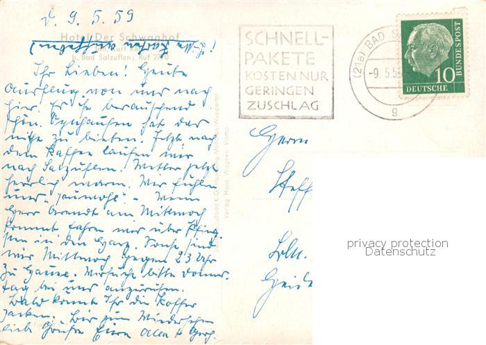 73780548 alte Postkarte Bad Salzuflen Hotel der Schwaghof postalisch gelaufen Fliegeraufnahme Erhaltung siehe scans [FriedD77] KatCode: 11110005766008