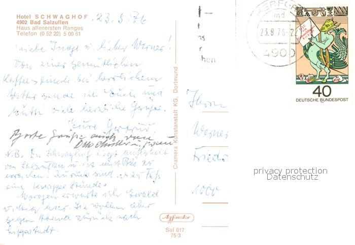 73020288 alte Postkarte Bad Salzuflen Hotel Schwaghof postalisch gelaufen Erhaltung siehe scans [NatalD47] KatCode: 11110005766008