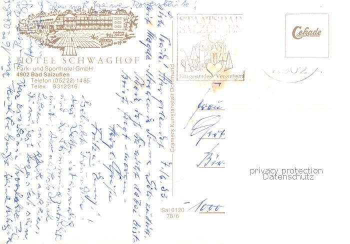 73005113 alte Postkarte Bad Salzuflen Hotel Schwaghof postalisch gelaufen Erhaltung siehe scans [WerneD78] KatCode: 11110005766008