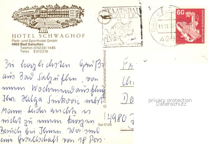 73333489 alte Postkarte Bad Salzuflen Hotel Schwaghof postalisch gelaufen Erhaltung siehe scans [LiesaD40] KatCode: 11110005766008
