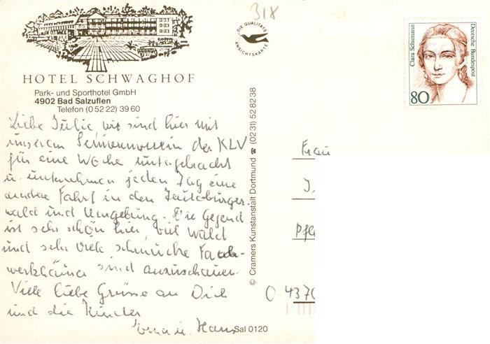 73877273 alte Postkarte Bad Salzuflen Hotel Schwaghof Park und Sporthotel Gastraum Foyer postalisch gelaufen Erhaltung siehe scans [WerneD78] KatCode: 11110005766008