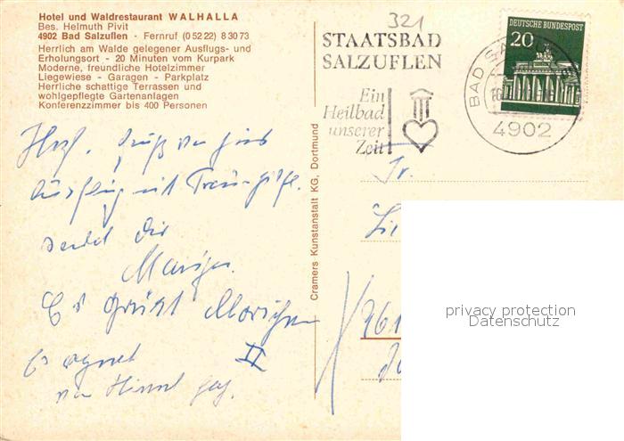 72615702 alte Postkarte Bad Salzuflen Hotel Waldrestaurant Walhalla postalisch gelaufen Erhaltung siehe scans [WerneD78] KatCode: 11110005766008
