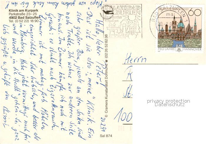 73166592 alte Postkarte Bad Salzuflen Klinik am Kurpark postalisch gelaufen Erhaltung siehe scans [FriedD77] KatCode: 11110005766008