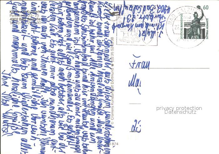 72319947 alte Postkarte Bad Salzuflen Klinik am Kurpark postalisch gelaufen Erhaltung siehe scans KatCode: 11110005766008