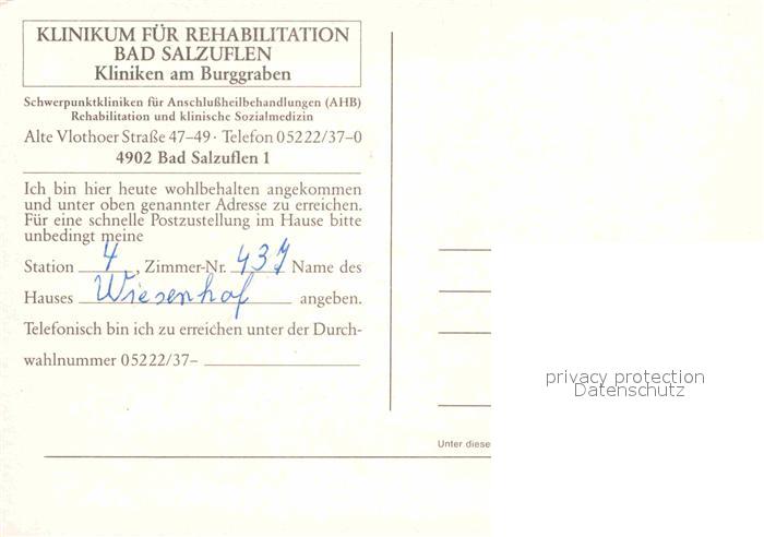 72889045 Bad Salzuflen Kliniken am Bruggraben postalisch nicht gelaufen Werbekarte (keine Postkarte) Erhaltung siehe scans [LiesaD40] KatCode: 11110005766008