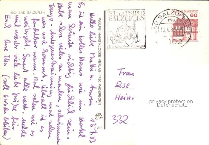 72535116 alte Postkarte Bad Salzuflen Kliniken am Burggraben postalisch gelaufen Erhaltung siehe scans [WerneD78 kt117box] KatCode: 11110005766008