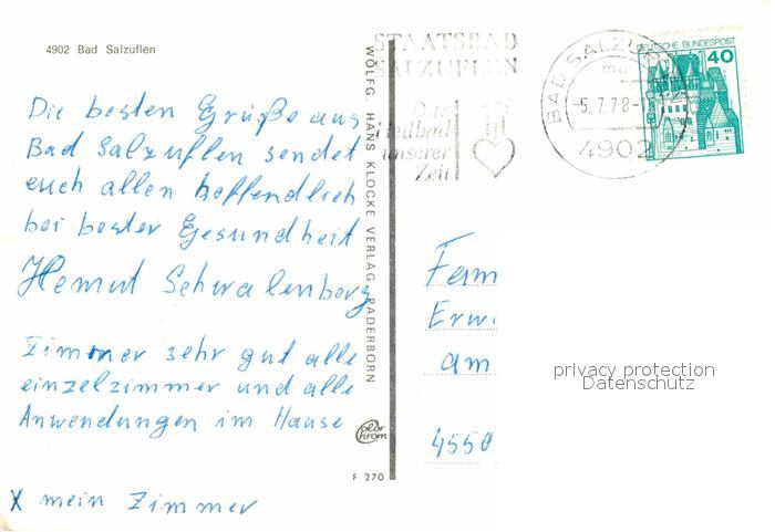 72824481 alte Postkarte Bad Salzuflen Kliniken am Burggraben Hallenbad Billard postalisch gelaufen Erhaltung siehe scans [FriedD77] KatCode: 11110005766008
