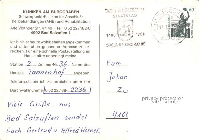 71947621 alte Postkarte Bad Salzuflen Kliniken am Burggraben Hallenbad Gastraum Zimmer postalisch gelaufen Erhaltung siehe scans KatCode: 11110005766008