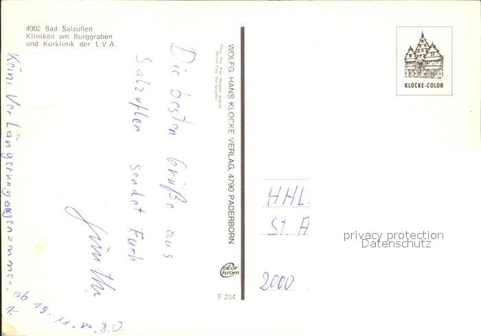 72050461 alte Postkarte Bad Salzuflen Kliniken am Burggraben Kurklinik der LVA Fliegeraufnahme postalisch gelaufen Erhaltung siehe scans KatCode: 11110005766008