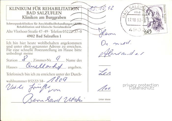 72614194 alte Postkarte Bad Salzuflen Kliniken im Burggraben postalisch gelaufen Erhaltung siehe scans [LiesaD40] KatCode: 11110005766008