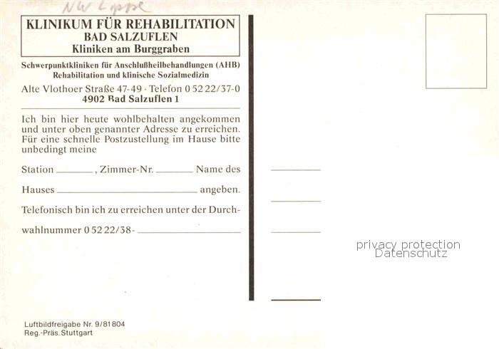 72890020 Bad Salzuflen Klinikum fuer Rehabilitation Kliniken am Burggraben postalisch nicht gelaufen Erhaltung siehe scans [FriedD77] KatCode: 11110005766008