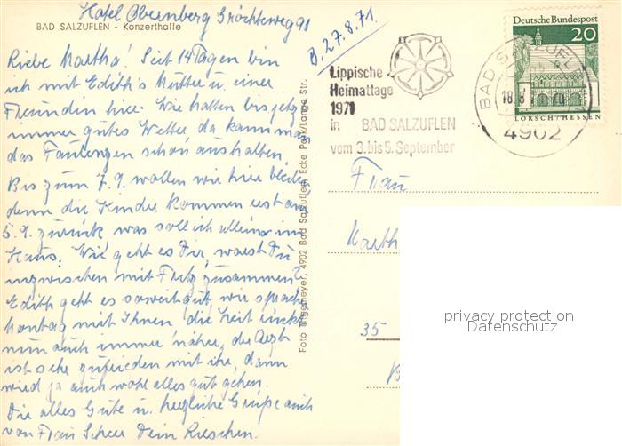 73294061 alte Postkarte Bad Salzuflen Konzerthalle postalisch gelaufen Erhaltung siehe scans [NatalD47] KatCode: 11110005766008