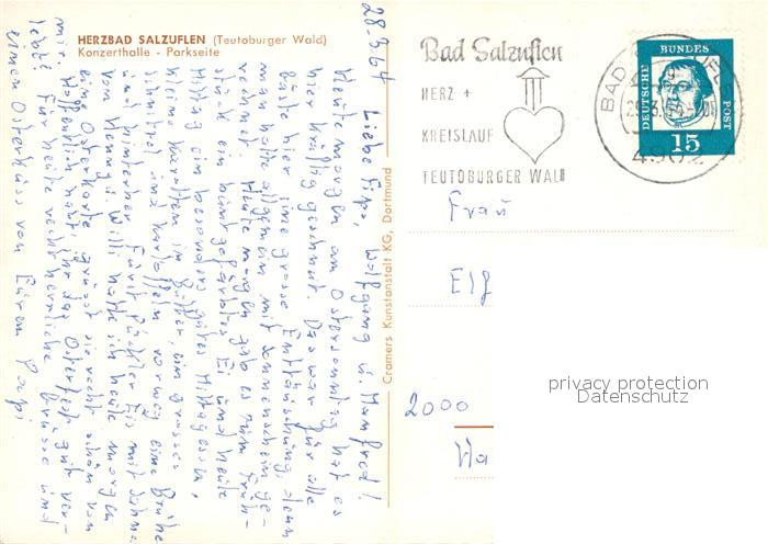 72961281 alte Postkarte Bad Salzuflen Konzerthalle Parkseite postalisch gelaufen Erhaltung siehe scans [WerneD78] KatCode: 11110005766008
