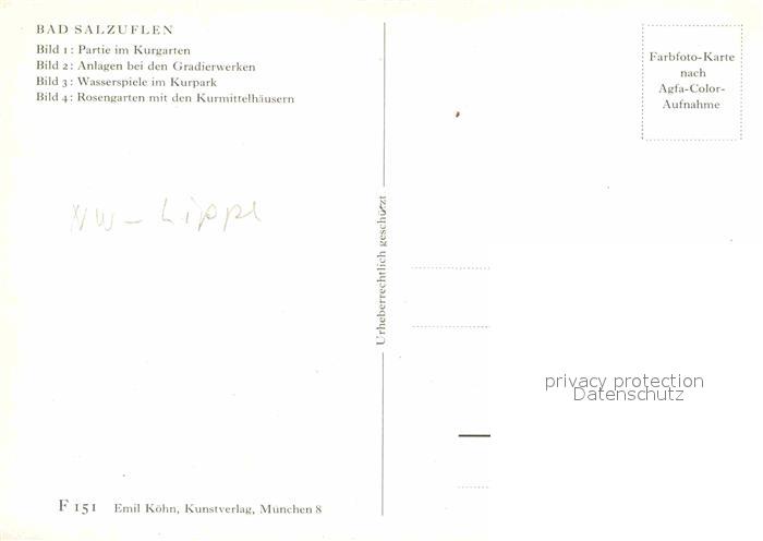 72890034 Bad Salzuflen Kurgarten Gradierwerk Wasserspiele Rosengarten Kurmittelhaus postalisch nicht gelaufen Erhaltung siehe scans [FriedD77] KatCode: 11110005766008