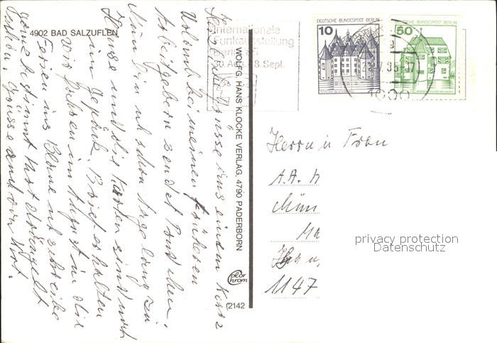 72225938 alte Postkarte Bad Salzuflen Kurgastzentrum Konzerthalle Kurpark Salinen Wappen postalisch gelaufen Erhaltung siehe scans KatCode: 11110005766008