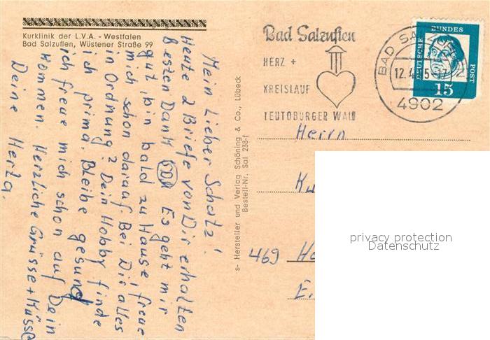 72946511 alte Postkarte Bad Salzuflen Kurklinik der L.V.A. postalisch gelaufen Erhaltung siehe scans [LiesaD40] KatCode: 11110005766008