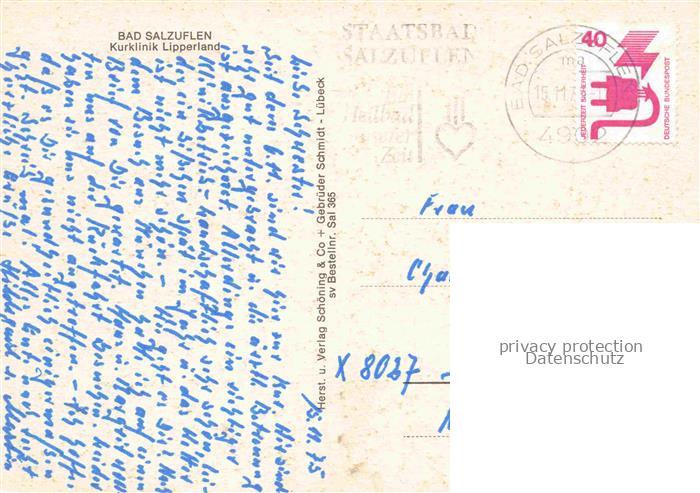 74027587 alte Postkarte BAD SALZUFLEN Kurklinik Lipperland postalisch gelaufen Erhaltung siehe scans [FriedD77] KatCode: 11110005766008