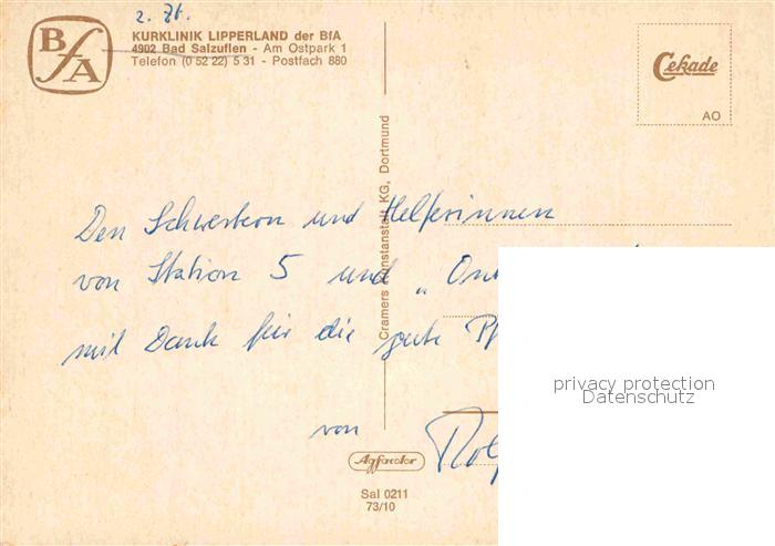 72794873 Bad Salzuflen Kurklinik Lipperland postalisch nicht gelaufen Erhaltung siehe scans [KathaD81] KatCode: 11110005766008