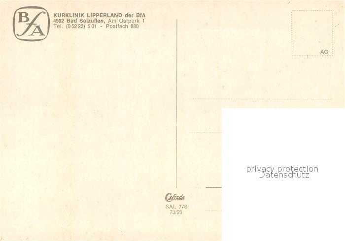 73688520 Bad Salzuflen Kurklinik Lipperland der BfA postalisch nicht gelaufen Erhaltung siehe scans [WerneD78] KatCode: 11110005766008