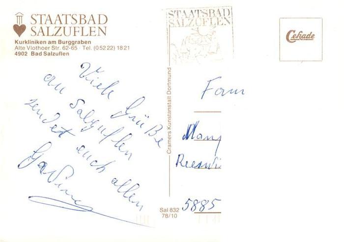 73943170 alte Postkarte Bad Salzuflen Kurkliniken am Burggraben Hallenbad Gymnastik Luftaufnahme postalisch gelaufen Erhaltung siehe scans [FriedD77] KatCode: 11110005766008