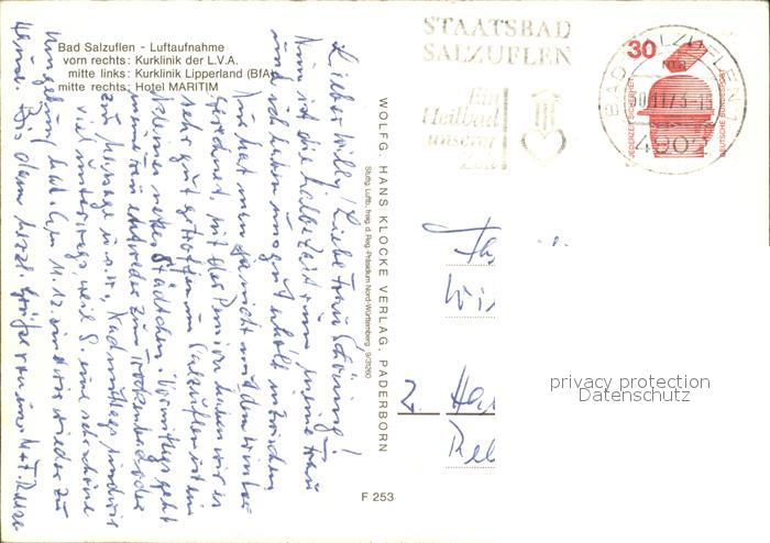 72066310 alte Postkarte Bad Salzuflen Kurkliniken der LVA und BfA Hotel Maritim Fliegeraufnahme postalisch gelaufen Erhaltung siehe scans KatCode: 11110005766008