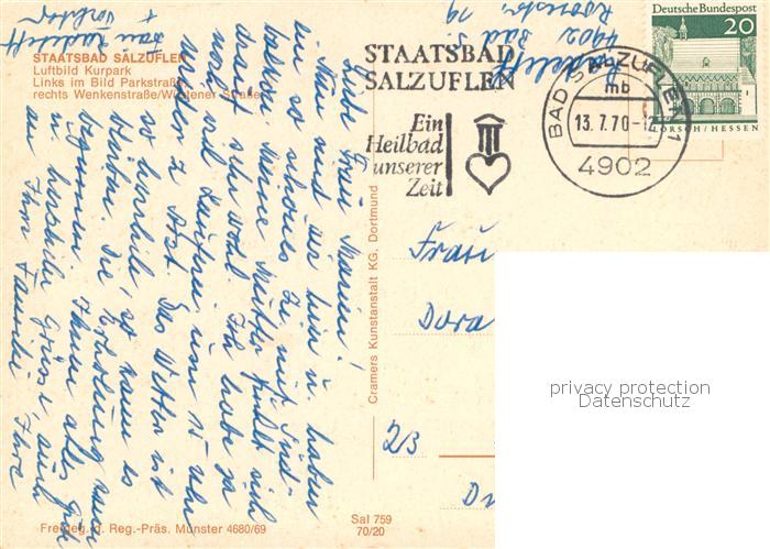 73760968 alte Postkarte Bad Salzuflen Kurpark postalisch gelaufen Fliegeraufnahme Erhaltung siehe scans [FriedD77] KatCode: 11110005766008