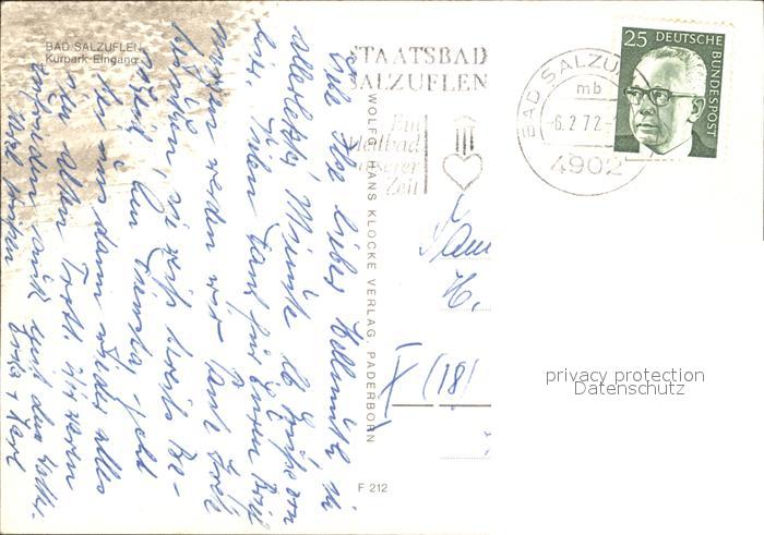72309166 alte Postkarte Bad Salzuflen Kurpark postalisch gelaufen Erhaltung siehe scans KatCode: 11110005766008