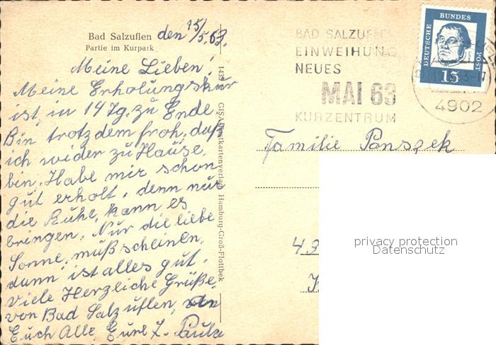 72196079 alte Postkarte Bad Salzuflen Kurpark postalisch gelaufen Erhaltung siehe scans KatCode: 11110005766008