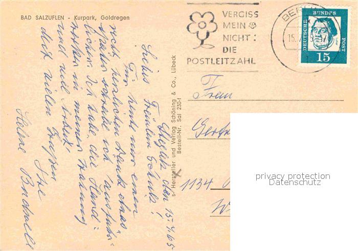 72889942 alte Postkarte Bad Salzuflen Kurpark Goldregen postalisch gelaufen Erhaltung siehe scans [FriedD77] KatCode: 11110005766008