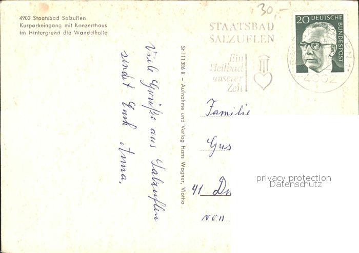 72064063 alte Postkarte Bad Salzuflen Kurparkeingang Konzerthaus Wandelhalle postalisch gelaufen Erhaltung siehe scans KatCode: 11110005766008