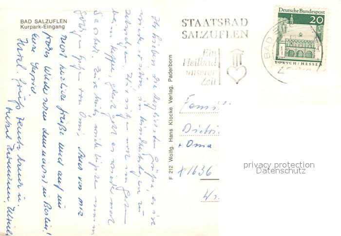 72965805 alte Postkarte Bad Salzuflen Kurparkeingang Park postalisch gelaufen Erhaltung siehe scans [LiesaD40] KatCode: 11110005766008