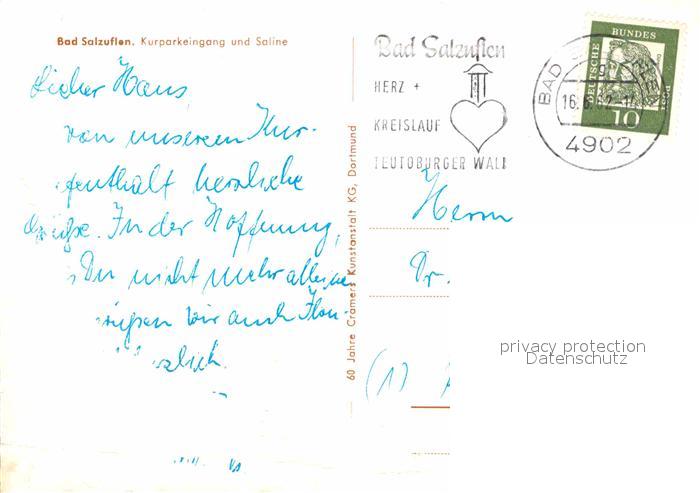 72919393 alte Postkarte Bad Salzuflen Kurparkeingang Saline postalisch gelaufen Erhaltung siehe scans [NatalD47] KatCode: 11110005766008