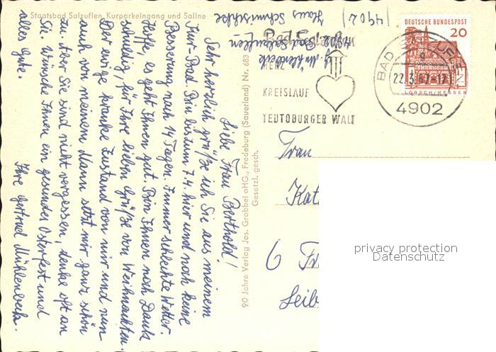 alte Postkarte Bad Salzuflen Kurparkeingang und Saline postalisch gelaufen Erhaltung siehe scans