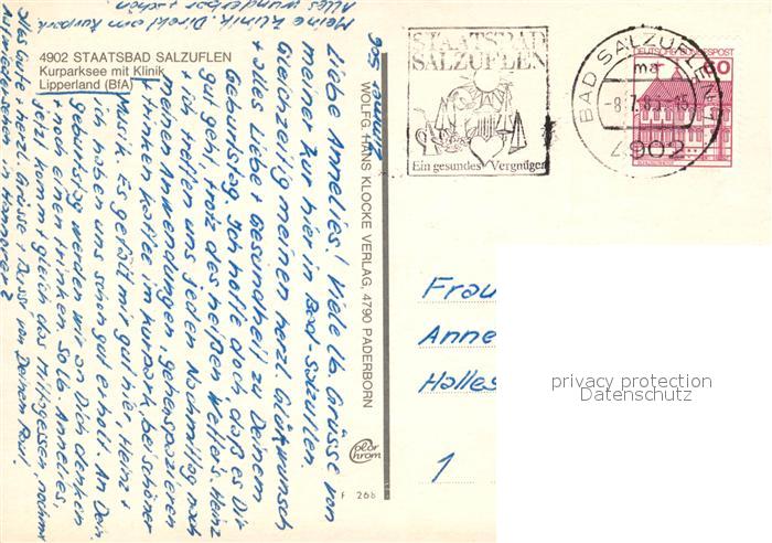 73205165 alte Postkarte Bad Salzuflen Kurparksee Klinik Lipperland postalisch gelaufen Erhaltung siehe scans [NatalD47] KatCode: 11110005766008