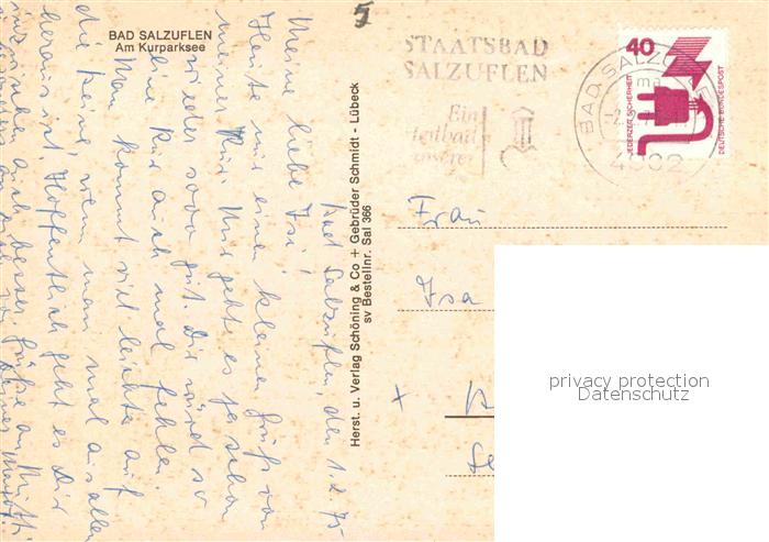 72889936 alte Postkarte Bad Salzuflen Kurparksee Klinik postalisch gelaufen Erhaltung siehe scans [FriedD77] KatCode: 11110005766008