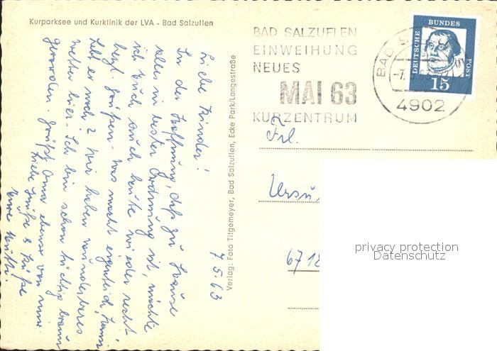 72077360 alte Postkarte Bad Salzuflen Kurparksee Kurklinik der LVA postalisch gelaufen Erhaltung siehe scans KatCode: 11110005766008
